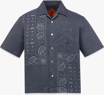 Unisex oversized oxford cotton short-sleeve shirt with MCM X KASINA bandana monogram print