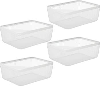 mDesign Organizer Bin Baskets simplify storage and organization. Perfect for dry food, snacks, cereals, canned goods, arts, crafts, cleaning, and beauty items. Versatile design complements any decor. Mix and match for custom storage.