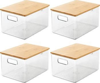 Plastic Kitchen Storage Box - Lid, Handles, 4 Pack, Clear/Natural