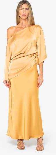 The Meadow Skirt, crafted in a luxurious satin that drapes effortlessly over the body. This skirt hugs the hips and falls into a soft, elongated silhouette that moves with grace. The lustrous finish adds a touch of glamour, making it perfect for evening occasions, destination weddings, or upscale resort wear.