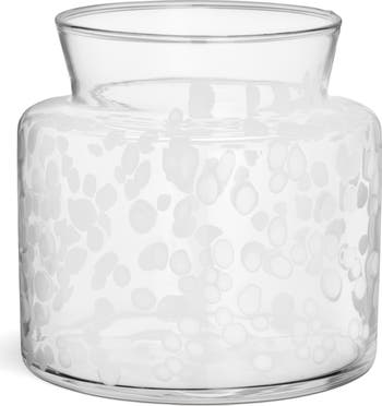 Rolled in crushed white glass mid-production, this vase seems to suspend a snowfall and takes on the appearance of a meadow frozen in winter when displaying your favorite arrangements.