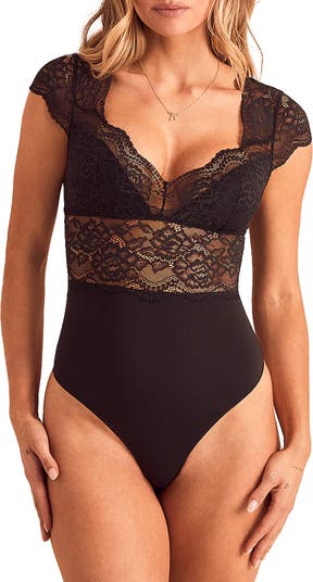 This lacy bodysuit features lined cups, lace cap sleeves, a snap closure at the crotch with a cheeky thong back. Style it with a skirt or your favorite pair of jeans for a night out.