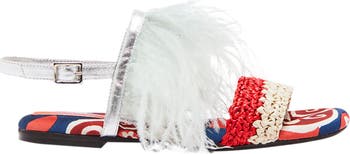 Yup, we took a firework and made a shoe out of it. The Medal Sandal is the perfect blend of luxury Italian craft and laid-back exuberance, arriving with a celebratory plume of ostrich feathers, an intricately woven toe strap, a shimmery metallic leather buckle and printed silk twill base. Wear them with your matching Pull-Up Shorts or Biennale Dress over a bathing suit, or give them the spotlight they deserve with your favorite all-white summer ensemble. Seriously, these babies are like the Fourth of July for your feet.