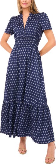 CeCe Medallion Print Maxi Dress, Main, color, Classic Navy