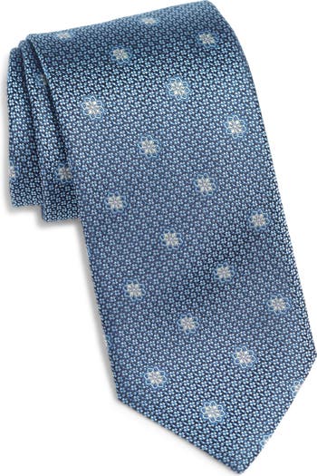 A striking floral medallion pattern draws the eye to this Italian-crafted tie made from luxe silk jacquard.