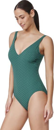 Step into sophistication with the Medina Textured V-Neck One Piece. Crafted from textured fabric, this elegant design features a flattering V-neckline with adjustable straps and built-in soft cups for gentle support. Tummy control and full front and back lining create a smooth, confident silhouette, while classic back coverage completes this polished, timeless one-piece.