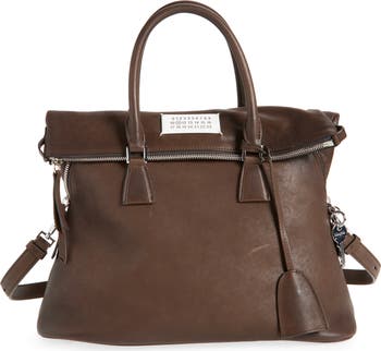 This washed-leather bag explores the label's 'anonymity of the lining' concept with a drawstring-pouch lining overflowing from the structured silhouette. The iconic anti-brand logo featuring Maison Margiela's number system adds an in-the-know touch.