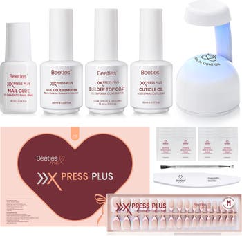 Beetles Press On Nails Kit - Cappuccino Mousse French | 7 Colors Medium Almond French Tip Press On Nails | 224Pcs 16 Sizes All-in-One Kit With Nail Glue,Remover,Builder Top Coat,Nail Lamp