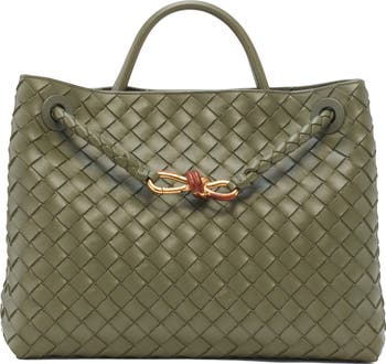 Italian for 'let's go,' this aptly named shoulder bag made in the label's iconic intrecciato weave makes for an essential bag you'll want to carry everywhere. Golden knot hardware brings signature shine to the shoulder strap of this leather style.