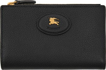 A slim wallet made from grainy calf leather, lined with a Burberry Check cotton linen blend in signature sand beige. The Bloomsbury collection is finished with a leather and metal Knight stamp, an archival motif first seen on Burberry bags in the 1980s.||Press-stud closure|10 card slots|Zip compartment|Note compartment|Two interior slip pockets|Hand-painted edges|Brushed metal hardware|Leather patch with Equestrian Knight Design at front|Embossed Burberry lettering at inner|Comes with a dust bag