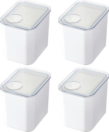 - AIRTIGHT CANISTER - The iDesign Eco System Airtight Kitchen Canister elegantly decants flour, sugar, rice, and other dry goods, lending a clean, classic look to any pantry or open shelving; The airtight, lift-off lid keeps contents fresh, while the clear container allows you to keep an eye on supply levels so you will never run out of your favorite ingredients again; Its stackable, space-saving design makes this an instant pantry favorite; Set of 4