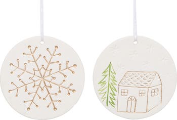 - Set of 2 beautifully crafted medium ceramic Christmas ornaments featuring intricate carved designs, perfect for adding a touch of elegance to your holiday decor. Made from high-quality ceramic, these white ornaments are durable and designed to complement any Christmas tree or home decoration theme. Ideal for indoor use, these ornaments make wonderful gifts for friends and family, perfect for holiday celebrations and hostess gifts. Easy to maintain with simple care instructions; just spot or wipe clean to keep them looking pristine throughout the festive season.