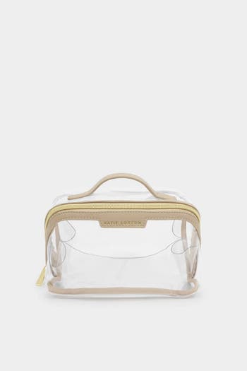 Medium Clear Makeup and Toiletry Bag in Light Taupe