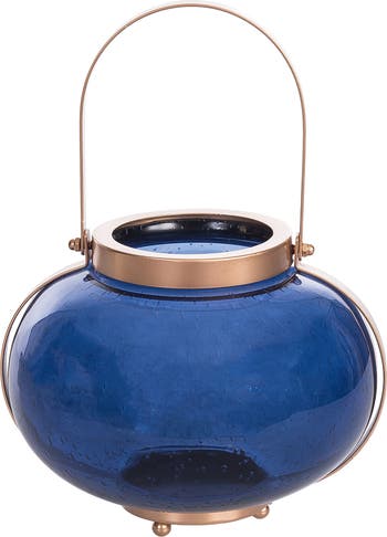 Medium Cobalt Blue Coastal Round Candle Holder Lantern