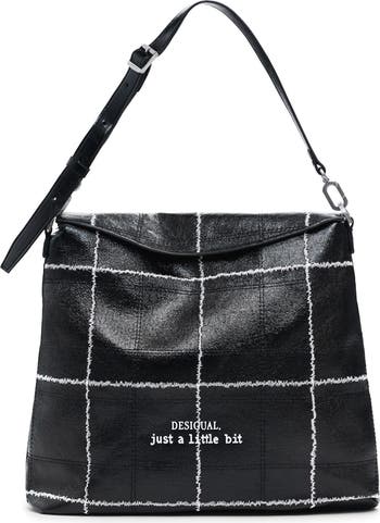 Update your on-the-go style with this faux-leather backpack with a stitched-check pattern and flap closure so you can easily access your essentials. Interchangeable straps allow for versatile carrying.
