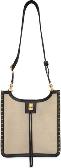 Long strands hang from the clasp of this scaled-down crossbody bag that's traced with studs down the sides for signature Rebecca Minkoff style. Multiple compartments and an adjustable strap offer easy organization and convenient carry.