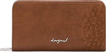 A bit of stitchwork adds a boho vibe to faux leather wallet that holds all your essentials when you're out and about.