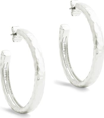 Textured with an artisanal hammered surface, these handcrafted hoop earrings are dipped in sterling silver and make a radiant addition to your look.