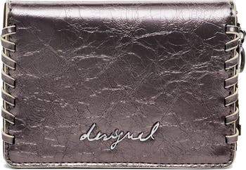 Desigual Medium Faux Leather Wallet, Alternate, color, Silver