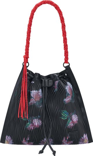 Groovy blooms and a pleated texture switch up the style of a shoulder bag that's also a backpack.