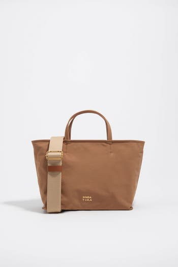 Medium handbag designed with two top handles and an adjustable fabric strap. Finished with leather details and a metallic BIMBA Y LOLA logo, this practical design features a secure zip fastening and an interior pocket for everyday organization.