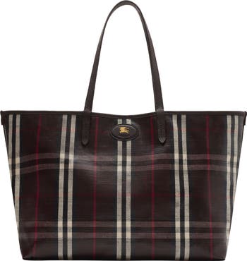 Rooted in the outdoors, this Burberry Check-jacquard tote bag is made in Italy from cotton-linen-blend canvas and features a coated finish inspired by rainwear. The unlined design is detailed with Burberry's Knight stamp, an archival motif first seen in the '80s.