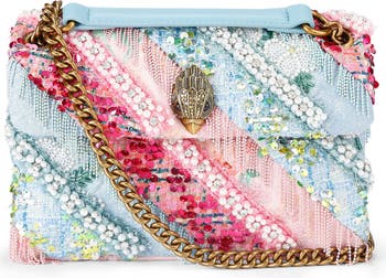 A crystal-embellished eagle head brings signature charm to a convertible shoulder bag detailed with shimmering beads, sequins and cascading fringe for textured, eye-catching shine.