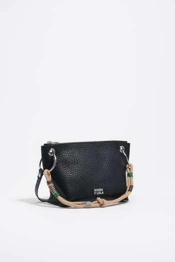 Medium trapezoid bag with a leather exterior. Designed with a cord and leather shoulder strap, leather details, metallic BIMBA Y LOLA logo with silver finish, zip fastening, and an interior pocket with engraved logo. Approx. 30.5 ��� 18 ��� 11 cm.