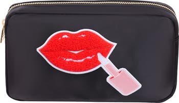 What it is: A nylon canvas cosmetics bag detailed with a chenille appliqué and refined with gleaming hardware.
