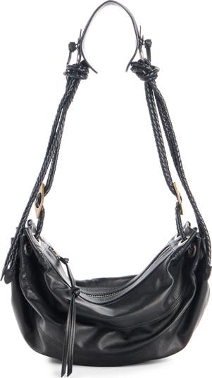 The brand that pioneered the Parisian cool-girl aesthetic is back with another rocker-chic-meets-boho style in this slouchy, half-moon shoulder bag made from soft lambskin suede. Adjustable braided straps with an antiqued diamond-shaped stopper and octagonal metal loop enhance the free-spirited vibe of the everyday-sized look.