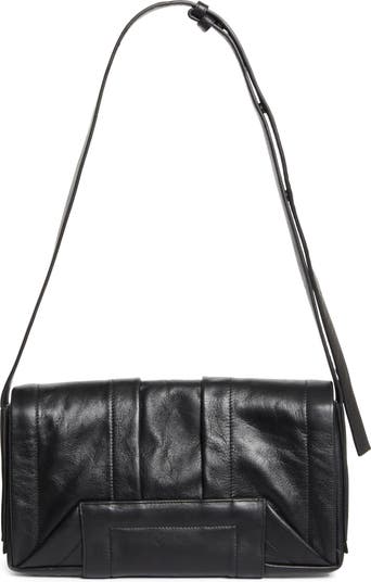A folded flap design adds visual intrigue to this moto-inspired quilted leather crossbody subtly branded with embossed logo lettering.