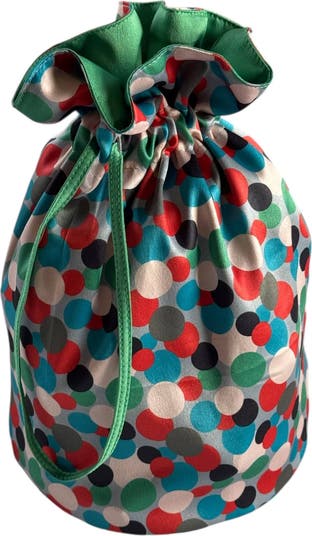 Wrap smarter, not harder. This reusable, reversible gift bag is made from 100% recycled plastic fibers and features a cheerful polka dot print that flips inside out for a fresh second bright green look. Durable, stylish, and easy to use — it’s a sustainable upgrade to traditional wrapping. As seen in Poosh by Kourtney Kardashian. Perfect for Medium Gifts – Fits candles, books, skincare sets, and more Made from Recycled Materials Durable & Tear-Resistant – Built to be reused again and again Product Dimensions: 11" h x 9" w with elegant round bottom with a diameter of 6"