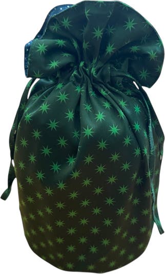 Wrap smarter, not harder. This reusable, reversible gift bag is made from 100% recycled plastic fibers and features a cheerful green star print that flips inside out for a fresh second snowy blue look. Durable, stylish, and easy to use — it’s a sustainable upgrade to traditional wrapping. As seen in Poosh by Kourtney Kardashian. Perfect for Medium Gifts – Fits candles, books, skincare sets, and more Made from Recycled Materials Durable & Tear-Resistant – Built to be reused again and again Product Dimensions: 11" h x 9" w with elegant round bottom with a diameter of 6"