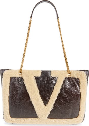 Medium Viva Superstar Crinkled Leather & Genuine Shearling Tote