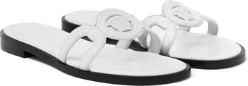 Borrowed from the maison's '90s archives, a Medusa-head mascot makes a fancy flourish for this Spanish-crafted slide sandal lined in soft lambskin.