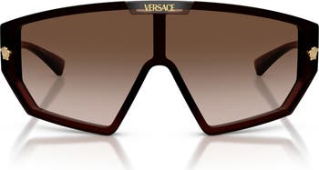 House-signature Medusa hardware gleams at the temples of these shield-style sunglasses fitted with innovative interchangeable lenses that also provide UV protection.