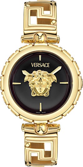 The brand's Greek key motif echoes around the case and onto the bracelet of this elegant Swiss-made watch centered with an iconic 3D Medusa head.