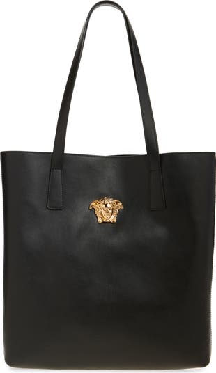Gleaming Medusa head hardware adds a glint of signature glamour to this otherwise minimalist Italian leather tote.