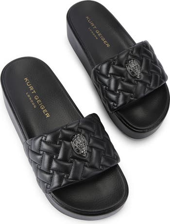 Signature eagle hardware sparkles atop the quilted strap of this outfit-making platform sandal.
