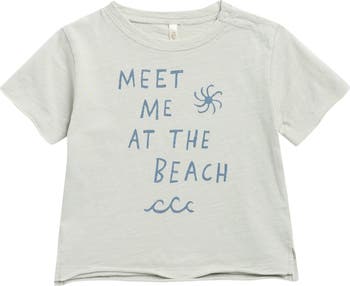 A raw edge and cotton slub add to the breezy vibe of this adorable graphic T-shirt made for your little beach babe.
