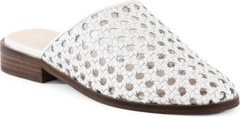 Woven composition amplifies the earthy vibes of a versatile mule set on a low block heel.