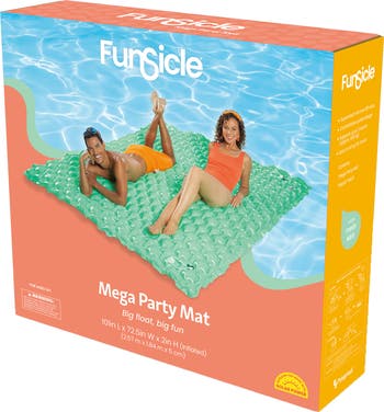 MEGA PARTY MAT: FRESH MINT - 101" - There’s nothing minimal about the Funsicle Mega Party Mat. Perfect for socializing on the water with your best buddies, this 8ft wide inflatable mat has room for everyone. You can stretch out in comfort thanks to the soft quilted design. Grommets are included for attaching the mat to other floats – keeping the party together and your mat secured. This giant pool mat is a sturdy choice, made from durable, puncture-resistant materials. Once the fun’s done, roll it up and carry it anywhere. The Funsicle Mega Party Mat is a supersized summer essential for fun events. 101x72.5x2", Supports Up To 660 lbs.