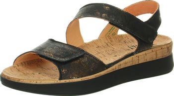 Handmade in Europe with soft leather straps and a cork footbed, this adjustable sandal will give you a boost and daylong comfort.