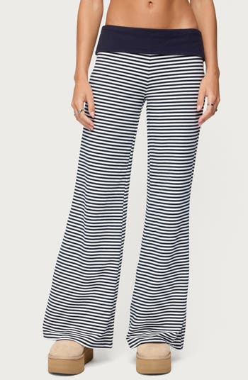 A fold-over colorblock waist brings stylish contrast to striped pants fashioned from comfortable stretch cotton and perfect for elevating your cozy weekend look.