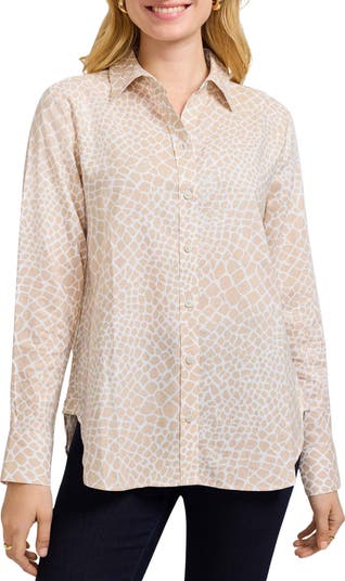 A pastel giraffe print brings a subtle touch of the wild to this classic linen-blend shirt.