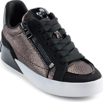 A side zipper adds a flash of edge to a street-chic mid-rise sneaker complete with logo lettering at the heel.