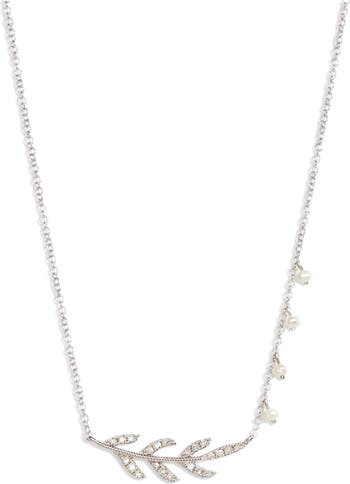 An organically-inspired pendant embellished with pavé diamonds centers this 14-karat-gold necklace featuring four freshwater pearl charms.