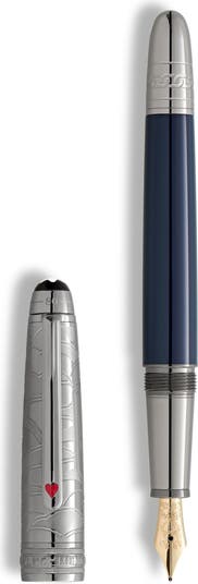 Inspired by Jules Verne's epic tale, this classic fountain pen features dark-blue resin and engraved detailing that traces Phileas Fogg's journey across continents. A red lacquered heart on the clip symbolizes the love between Fogg and Princess Aouda, while the locomotive-engraved cap pays homage to Fogg and Passepartout's harrowing adventures traversing North America by train. The handcrafted 18-karat-gold nib is marked with 14/11 and 21/12, commemorating Mr. Fogg's Yokohama departure date and is ambition return to the London Club 36 days later.