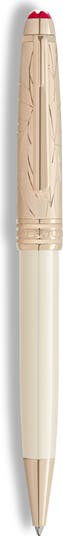 Inspired by William Shakespeare's 'Romeo and Juliet,' this ballpoint pen features ivory-hued resin and engraved detailing that honors the star-crossed lovers. Feathered angel’s wings on the cap reference Juliet and her lover’s famous plea, 'O, speak again, bright angel!'