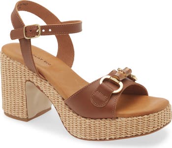 This cushioned sandal featuring a woven platform topped with rich leather straps and a leather-lined footbed delivers a refined beachy look.